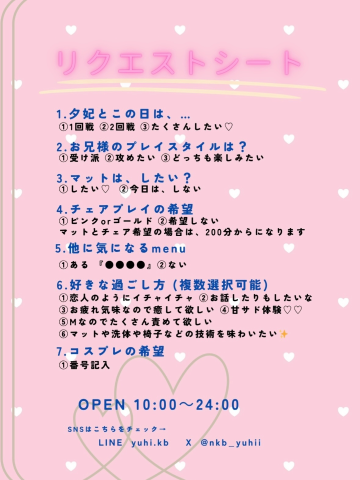 👸姫予約限定リクエストシート👸